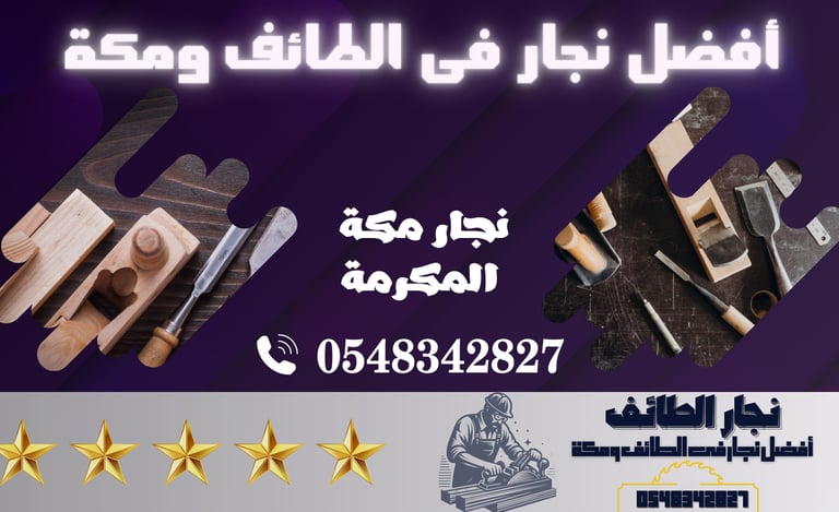 هل تبحث عن أفضل نجار في الطائف ومكة؟ نحن نقدم خدمات تركيب وصيانة الخزائن (الدولايب)، غرف النوم، المطابخ، الأثاث، تصليح الأبواب وتركيب مكيفات الشباك. بالإضافة إلى خدمات نقل العفش وشراء الأثاث المستعمل بأقل الأسعار وأعلى جودة. اتصل الآن على 0548342827 للحصول على خدمة سريعة وموثوقة في جميع الأحياء.