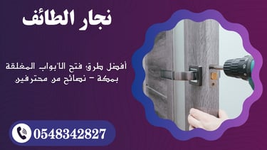 📞 لخدمة سريعة واحترافية، يمكنك التواصل مع نجار الطائف على الرقم (0548342827)، حيث ستحصل على حل سريع وآمن دون أي أضرار لبابك أو قفلك.