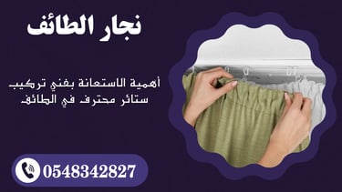 إن تركيب الستائر ليس مجرد مهمة جمالية بل يتطلب دقة واحترافية لضمان نتائج مثالية. مع نجار الطائف، نقدم لك خدمات تركيب ستائر محترفة في الطائف لضمان أن كل عملية تركيب تتم بأعلى مستوى من الجودة والدقة. سواء كنت تبحث عن تركيب ستائر للمنزل أو المكتب، نحن هنا لخدمتك بكل احترافية.