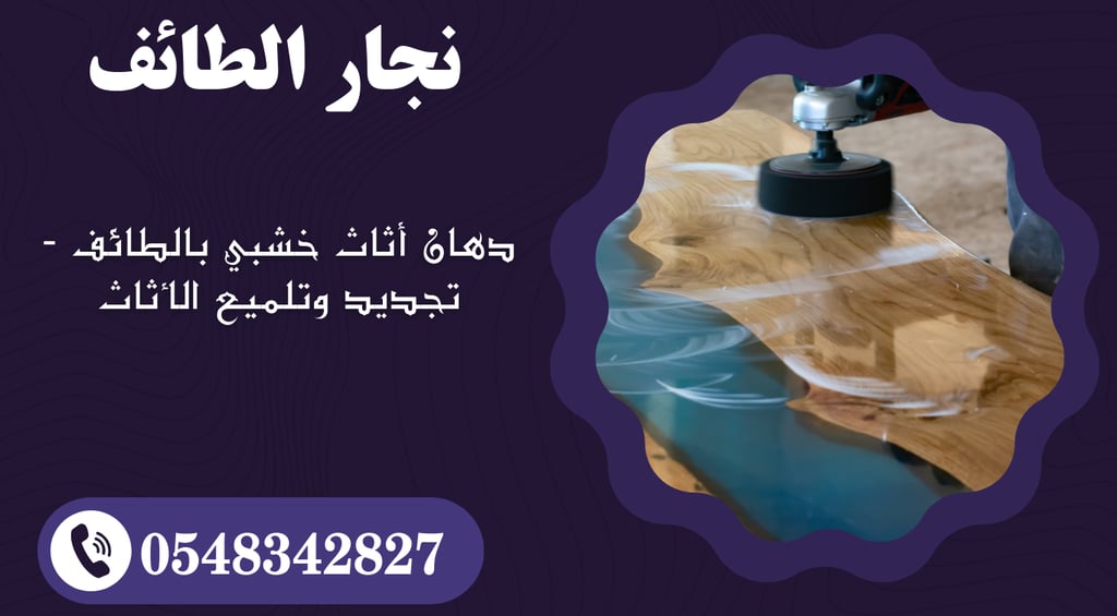 تلميع الأثاث الخشبي: تقدم نجار الطائف خدمة تلميع الأثاث الخشبي بحيث يظهر الأثاث بمظهر لامع ومحافظ على جودته. نستخدم مواد تلميع عالية الجودة للحفاظ على البنية الخشبية مع زيادة لمعانها وجمالها.