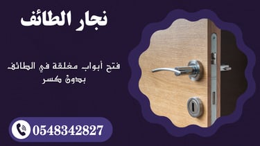 إذا كنت تواجه مشكلة مع باب مغلق في الطائف وتحتاج إلى فني فتح الأبواب المغلقة بأسرع وقت وبأفضل جودة، لا تتردد في الاتصال بنا على 0548342827. نحن في نجار الطائف نقدم لك خدمات متميزة، وسنصل إليك في وقت قياسي لإنهاء المشكلة بأعلى مستوى من الأمان والدقة.