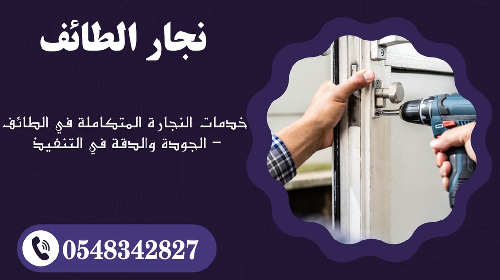 إذا كنت بحاجة إلى خدمات النجارة المتكاملة في الطائف، فلا تتردد في الاتصال بـ نجار الطائف على الرقم 0548342827. نحن هنا لتلبية جميع احتياجاتك الخشبية، من التصميم إلى التنفيذ، وبأسعار تنافسية.