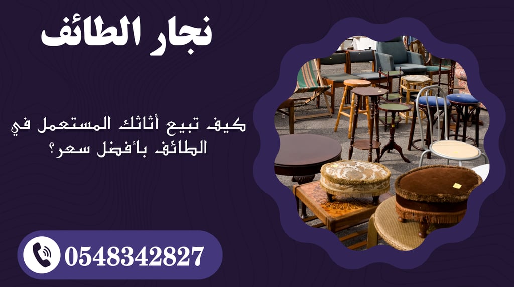 إذا كنت ترغب في بيع أثاثك المستعمل في الطائف بأعلى سعر، لا تتردد في التواصل مع نجار الطائف. نحن نقدم لك أفضل الحلول لبيع الأثاث بأفضل الأسعار وبأمان تام.