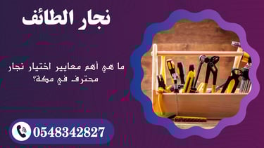 📞 للحجز والاستفسار، يمكنك التواصل مع نجار الطائف عبر الرقم (0548342827) والحصول على أفضل خدمات النجارة في مكة بجودة وكفاءة عالية.