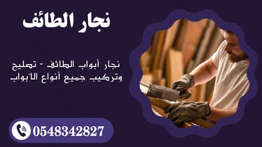 إذا كنت بحاجة إلى تركيب أو تصليح أبواب بأعلى معايير الجودة في الطائف، لا تتردد في الاتصال بـ نجار الطائف اليوم على 0548342827. نحن هنا لتلبية جميع احتياجاتك بأعلى مستوى من الاحترافية والدقة.