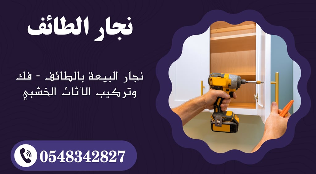 إذا كنت تبحث عن نجار في البيعة بالطائف متخصص في فك وتركيب الأثاث الخشبي، فلا تتردد في الاتصال بـ نجار الطائف على 0548342827. نحن نقدم لك خدمات احترافية بأعلى جودة وأفضل الأسعار. تواصل معنا الآن للحصول على استشارة مجانية أو تحديد موعد لتنفيذ أعمالك.