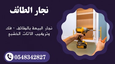 نجار الطائف - خبراء فك وتركيب وصيانة الأثاث والمطابخ | نقدم خدمات متكاملة تشمل فك وتركيب الخزائن (الدولايب)، غرف النوم، المطابخ، الأبواب والأثاث الخشبي، بالإضافة إلى صيانة وإصلاح الأثاث، نقل العفش، وشراء الأثاث المستعمل بأفضل الأسعار. نعمل في الطائف ومكة بجودة عالية وأسعار تنافسية.
