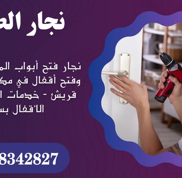 لا تتردد في التواصل مع النجار المتخصص للحصول على خدمات فتح الأبواب وإصلاح الأقفال بسرعة وكفاءة. سواء كنت في مكة، حي بطحاء قريش أو المناطق المجاورة، ستحصل على خدمة موثوقة وآمنة بأفضل الأسعار.