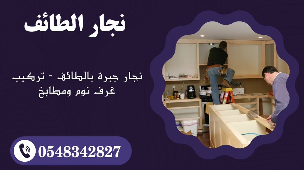 إذا كنت بحاجة إلى نجار في جبرة بالطائف لتنفيذ خدمات تركيب غرف النوم والمطابخ، لا تتردد في الاتصال بـ نجار الطائف على 0548342827. نحن نقدم لك خدماتنا بأعلى جودة وبأسعار تنافسية.