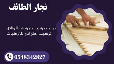 إذا كنت تبحث عن تركيب باركيه في الطائف، تواصل مع نجار الطائف على 0548342827 للحصول على أفضل الخدمات بأسعار تنافسية. نحن هنا لخدمتك وتلبية احتياجاتك من الأرضيات الخشبية والباركيه بأعلى جودة واحترافية.