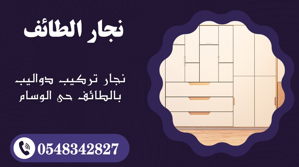 إذا كنت تبحث عن نجار محترف لتركيب الدواليب في الطائف، فنجار الطائف هو الخيار الأمثل لك. يقدم نجار الطائف، المتواجد في حي الوسام، خدمات تركيب دواليب عالية الجودة تعتمد على الحرفية والدقة. بفضل خبرته الطويلة وتعامله مع مختلف أنواع الخشب وتصاميم الدواليب، يمكنك الاعتماد عليه لتلبية احتياجاتك بشكل مثالي. هل لديك فكرة معينة في ذهنك؟ لا تتردد في التواصل مع نجار الطائف عبر الرقم 0548342827 لترتيب موعد أو للاستفسار عن الأسعار والخدمات المتاحة. جودة الخدمة وسرعة الإنجاز هي أولوياته، مما يجعله الخيار الأمثل لكل من يبحث عن تركيب دواليب أنيقة وعملية.