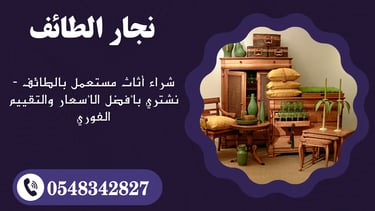 نحن في نجار الطائف نقدم لك أفضل العروض والشراء السريع للأثاث المستعمل مع خدمة النقل المجاني، لذا لا تتردد في الاتصال بنا الآن!