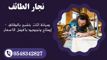إذا كنت بحاجة إلى صيانة الأثاث الخشبي في الطائف، لا تتردد في الاتصال بـ نجار الطائف على 0548342827 للحصول على أفضل خدمة بأفضل الأسعار. نحن هنا لضمان إصلاح وتجديد أثاثك الخشبي بأعلى جودة واحترافية.