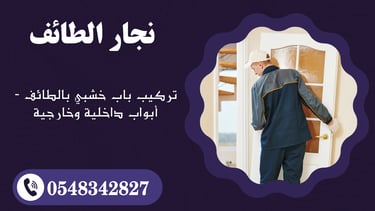 إذا كنت بحاجة إلى تركيب أبواب خشبية في الطائف، سواء كانت أبواب داخلية أو خارجية، يمكنك الاتصال بـ نجار الطائف على 0548342827. نحن هنا لتلبية جميع احتياجاتك وتقديم أفضل الحلول من حيث الجودة والسعر.