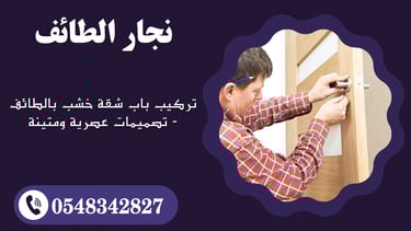 إذا كنت تبحث عن تركيب باب خشب لشقتك في الطائف، فنحن نقدم لك تصميمات عصرية وأبواب خشبية متينة تناسب جميع الأذواق. نحن متخصصون في تركيب جميع أنواع الأبواب الخشبية ذات الجودة العالية التي توفر لك الأمان والجمال في آن واحد.